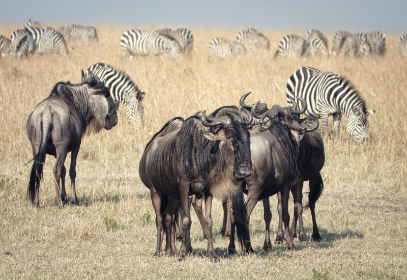 The Great Wildebeest Movement passes through these plains each year. Over a million wildebeest, zebras, and gazelles travel in a circular route searching for water and fresh grass. Predators track the herds. Young calves are born in the south during calving season, drawing lions and cheetahs to the newborns. In the middle months, river crossings create tense moments as crocodiles wait below the surface. It is not just wildlife watching – it is an ecosystem in motion.